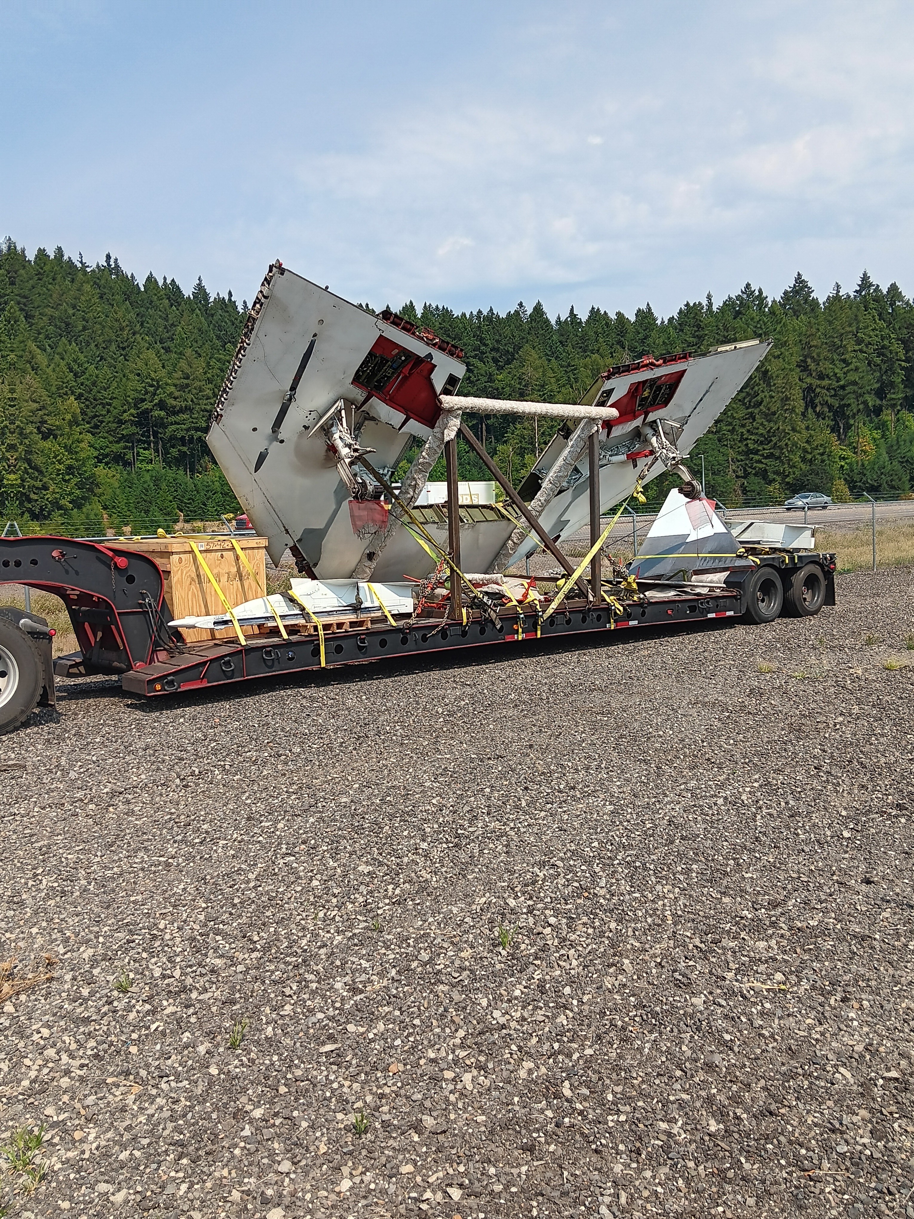 After much staff coordination and the fundraising necessary to acquire the necessary long-haul transportation, 777 was transferred from Addison to the Oregon Military Museum (OMM) via two tractor trailers. One carried the fuselage and the other the wing assembly, and arrived at the OMM on August 25, 2025, almost 36 years after it left the state.